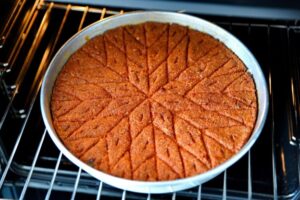 ثالثاً: بعد إخراجها من الفرن، دعها تبرد قليلاً ثم قم بتقطيعها إلى مربعات.